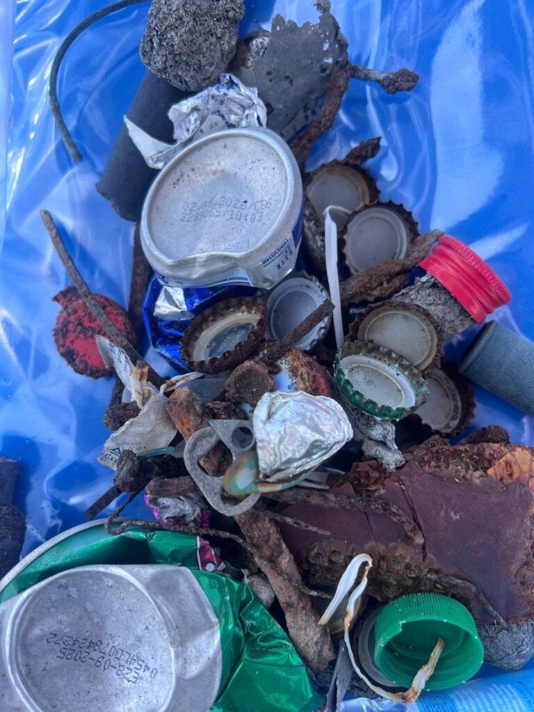 Muniti di metal detector professionali, volontari e operatori hanno esplorato l’arenile, portando alla luce chiodi, fili di ferro, tappi di bottiglia e altri oggetti metallici sepolti. Un intervento tanto silenzioso quanto efficace, che ha dimostrato quanto inquinamento si nasconda sotto la superficie, oltre il visibile.